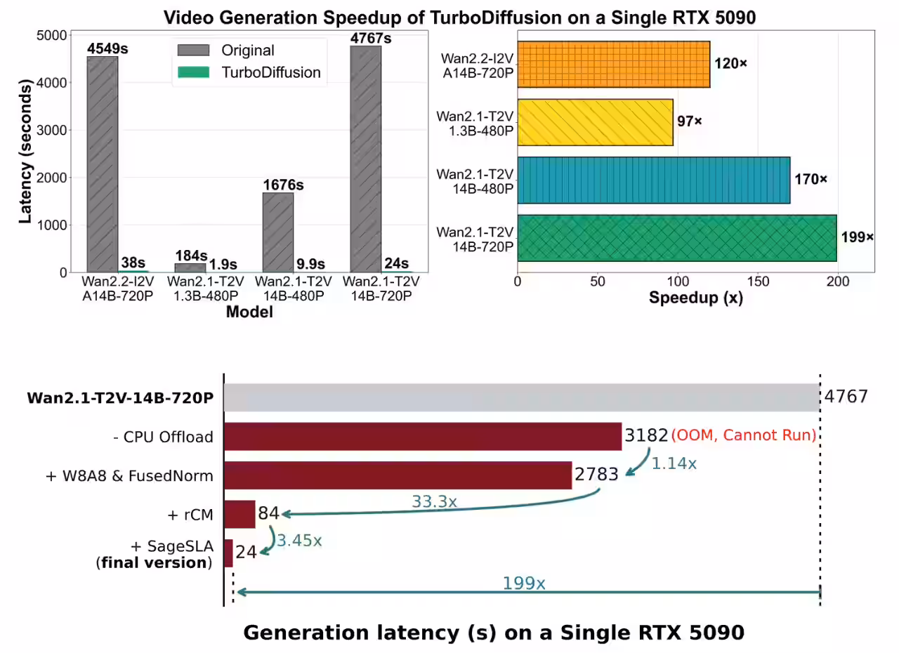 清华开源 TurboDiffusion:AI 视频生成最高提速 200 倍,单张 RTX 5090 秒出大片