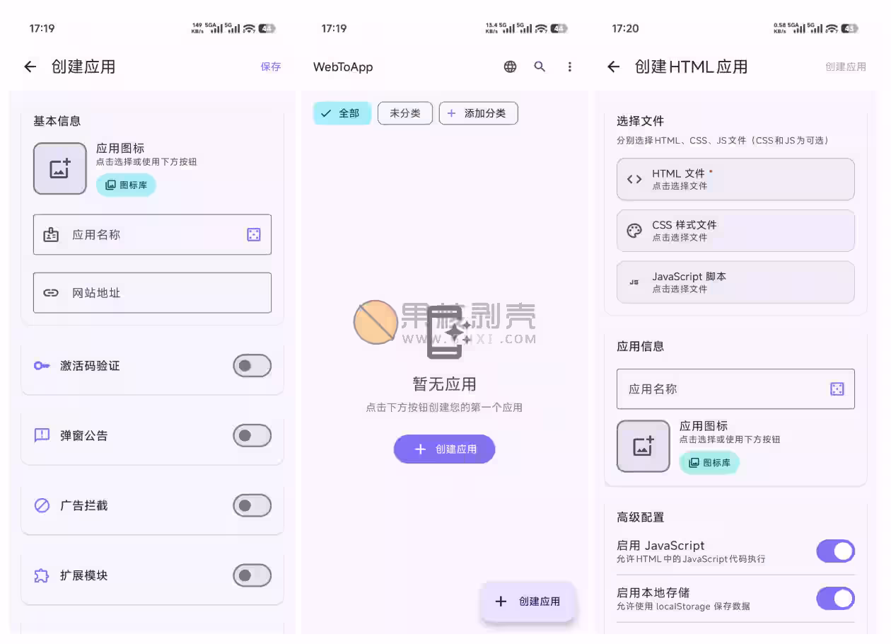 WebToApp 是一款能够秒速将网站转换为 Android 应用的工具。软件能将任意网址转独立应用、图片/视频转全屏应用。扩展模块包含10个内置模块 + 30+代码模板,支持模块文件导入导出,用自然语言描述需求,AI 自动生成模块代码可以智能生成精美图标。